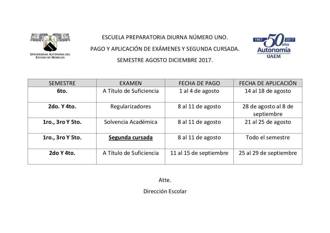 Atención Alumnos que terminaron segundo y cuarto semestre les recordamos que el viernes 11 de agosto es el último día para realizar el pago y entregar el comprobante con su secretaria de los exámenes regularizados, solvencia y materia a recursar. De no hacer el trámite, perderán derecho a hacer el examen o recursar.