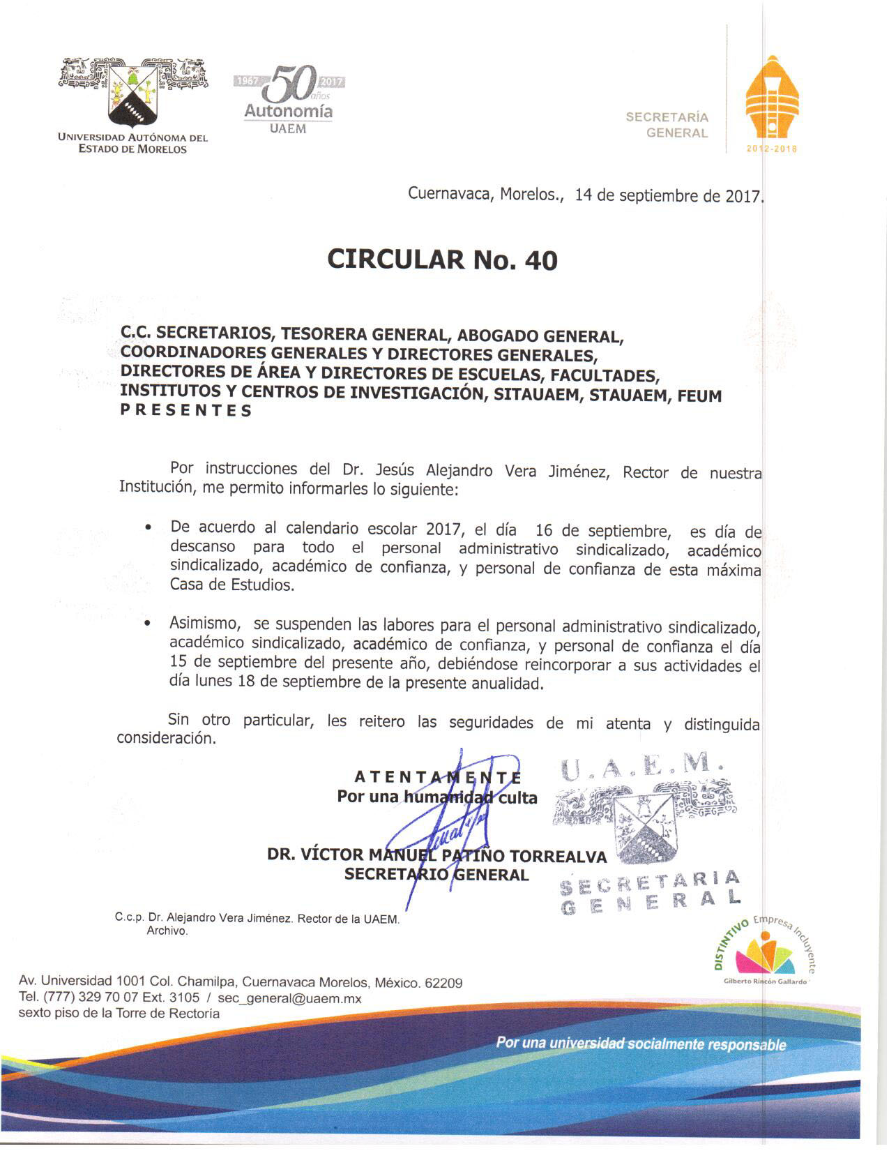 Estimados alumnos y padres de familia les informamos que no habrá labores el 15 y 16 de septiembre por lo que nos incorporamos a clases el día lunes 18 del presente mes. Que tengan un buen fin de semana. Atte. Dirección Escolar Comparte esto: Haz clic para compartir en X (Se abre en una ventana nueva) X Haz clic para compartir en Facebook (Se abre en una ventana nueva) Facebook Me gusta Cargando... Relacionado
