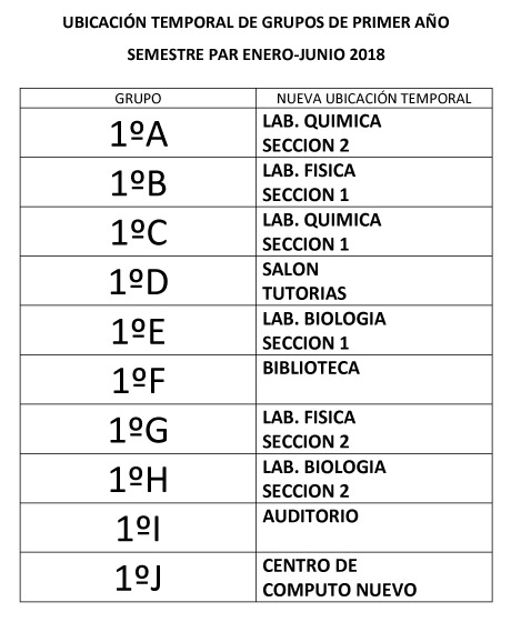 Les compartimos la ubicación que tendrán los 10 grupos de primer año a partir del día 6 de febrero del año en curso. Esta re-ubicación de salones se está realizando debido a los trabajos de construcción de los dos primeros edificios de salones de nuestra institución.