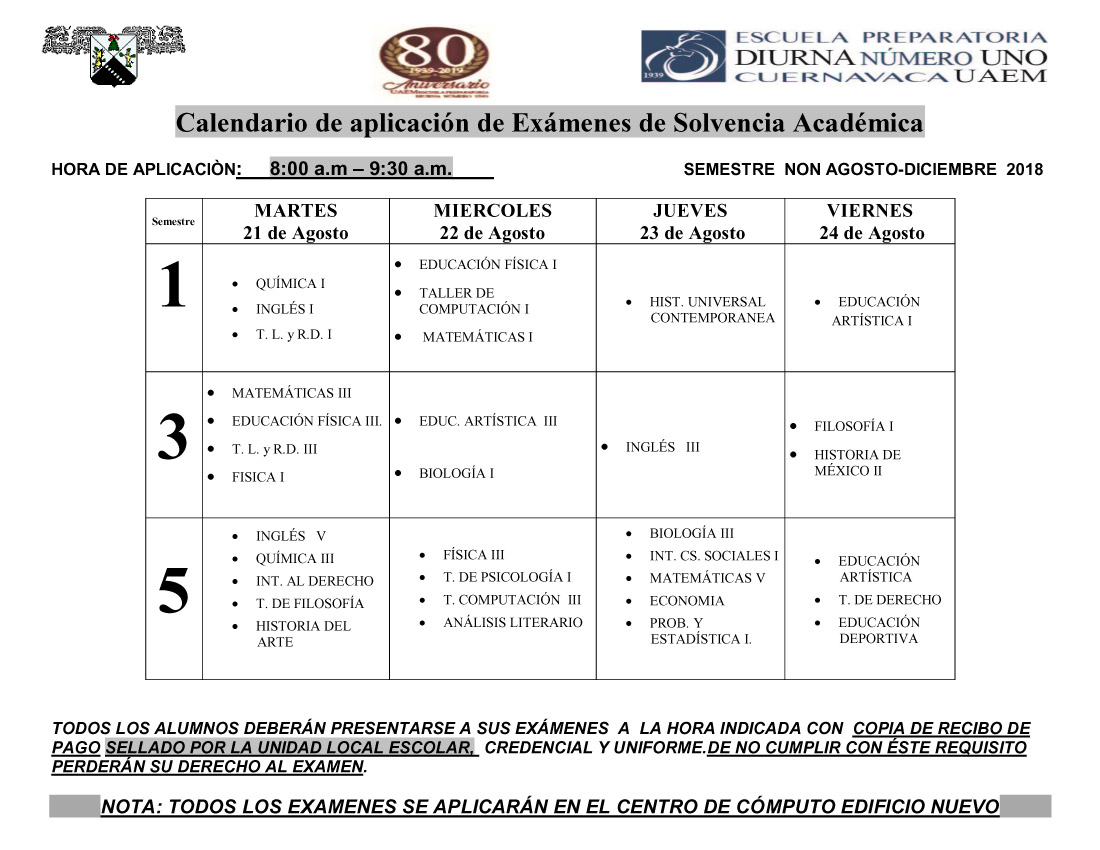 Les compartimos el calendario de aplicación de los Exámenes de Solvencia Académica. Iniciamos con la aplicación el martes 21 de Agosto. Atte. Dirección Escolar Comparte esto: Haz clic para compartir en X (Se abre en una ventana nueva) X Haz clic para compartir en Facebook (Se abre en una ventana nueva) Facebook Me gusta Cargando... Relacionado