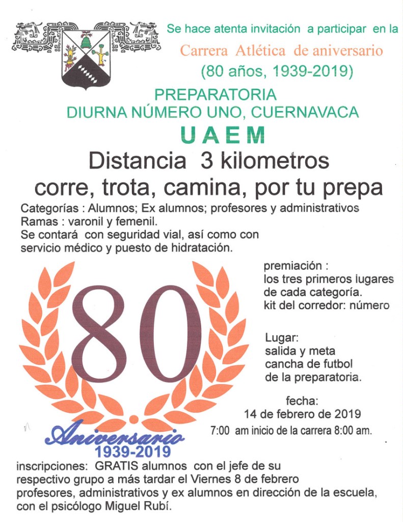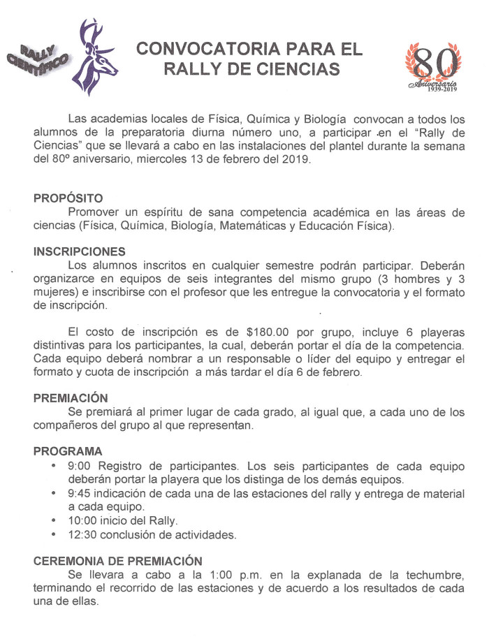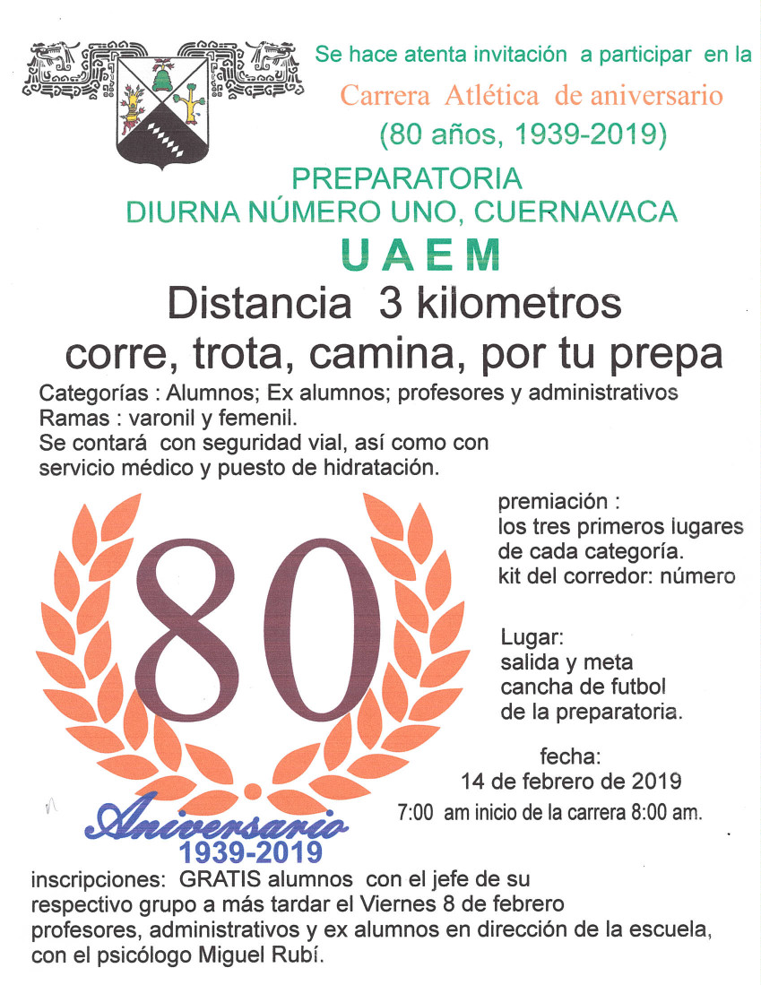 Les informamos que aún estamos a tiempo para realizar la inscripción al Rally de ciencia y a la carrera atlética, ambos eventos que se van a realizar en el marco de la conmemoración del 80 aniversario.