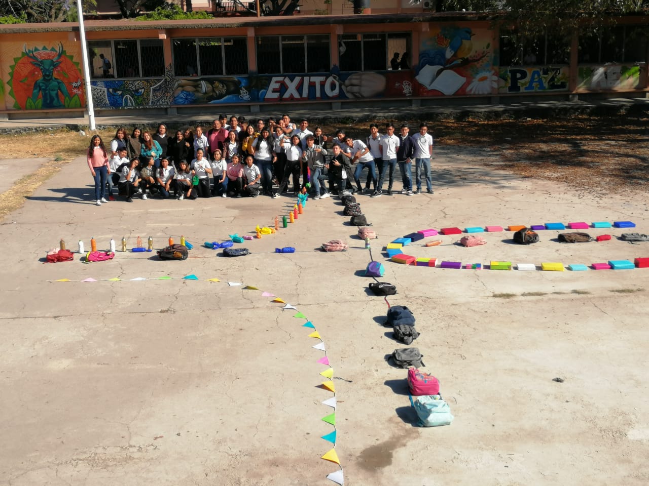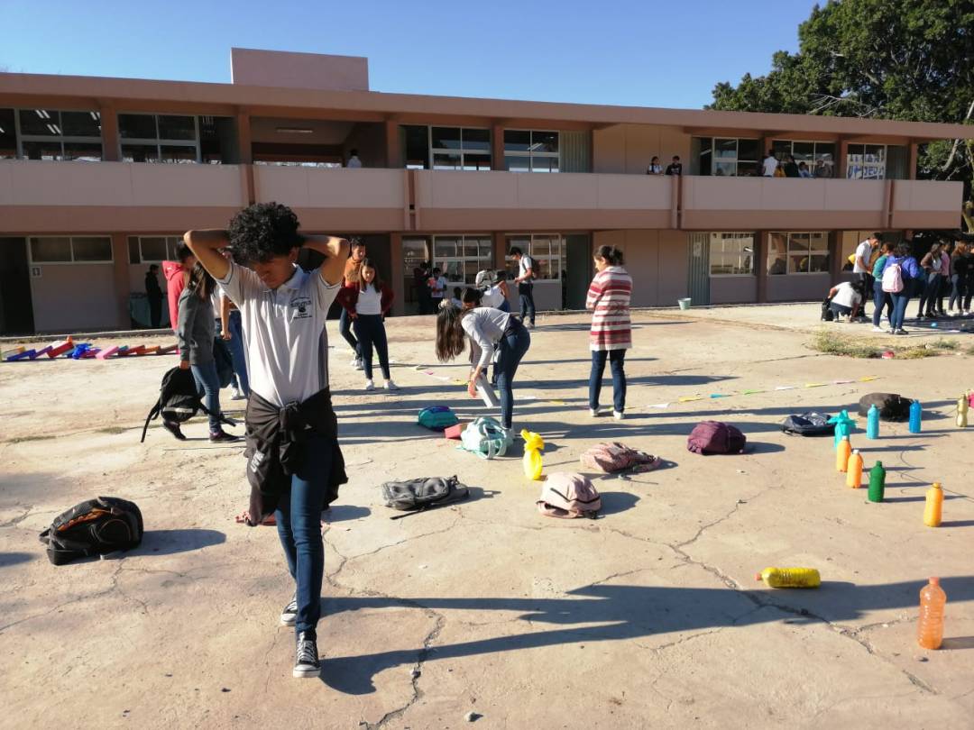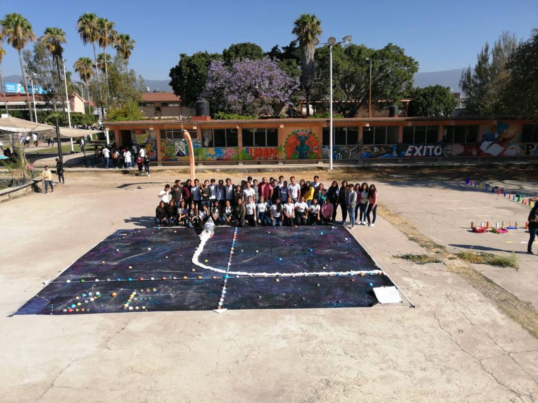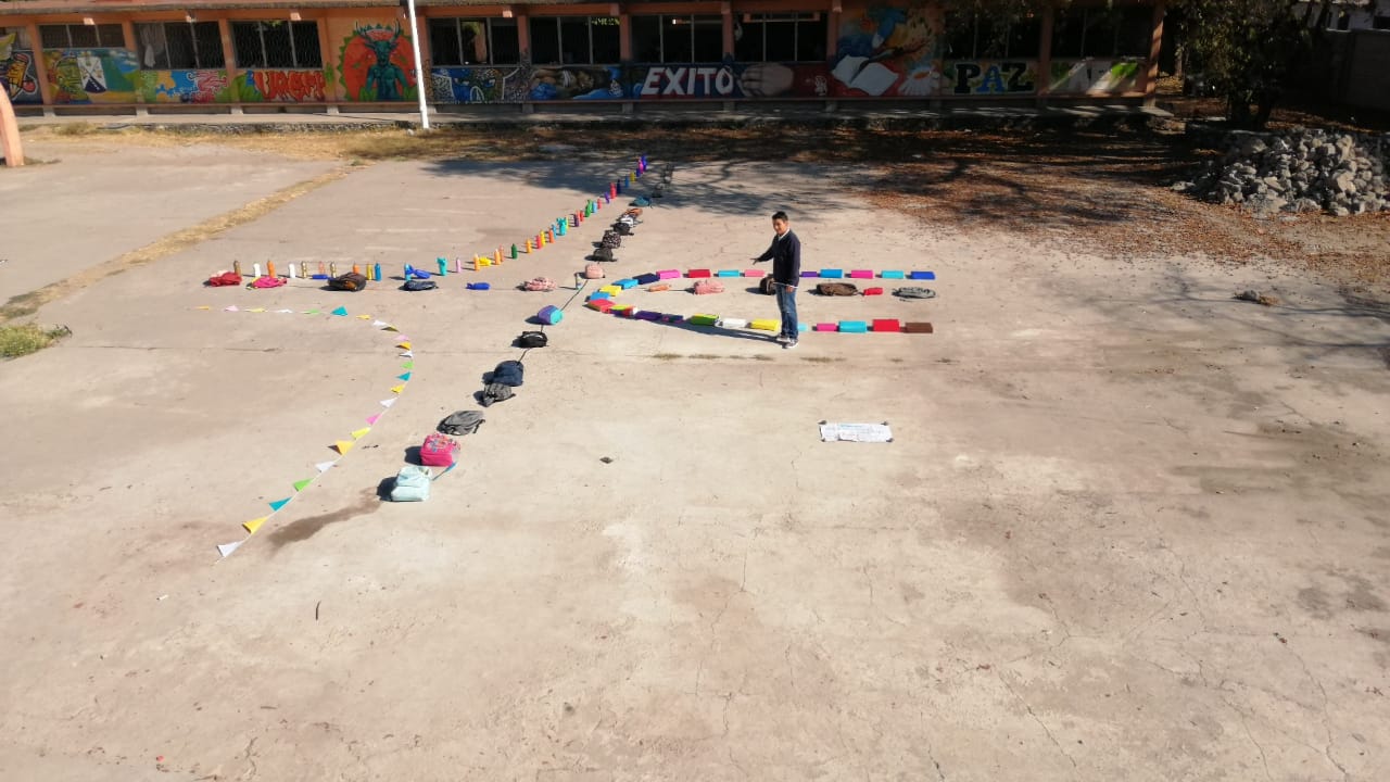Los alumnos de 2E y 2F de la asignatura de matemáticas IV, llevaron a cabo una «Representación gráfica de una función, expresando su dominio y rango» en la explanada de las canchas de segundos años.