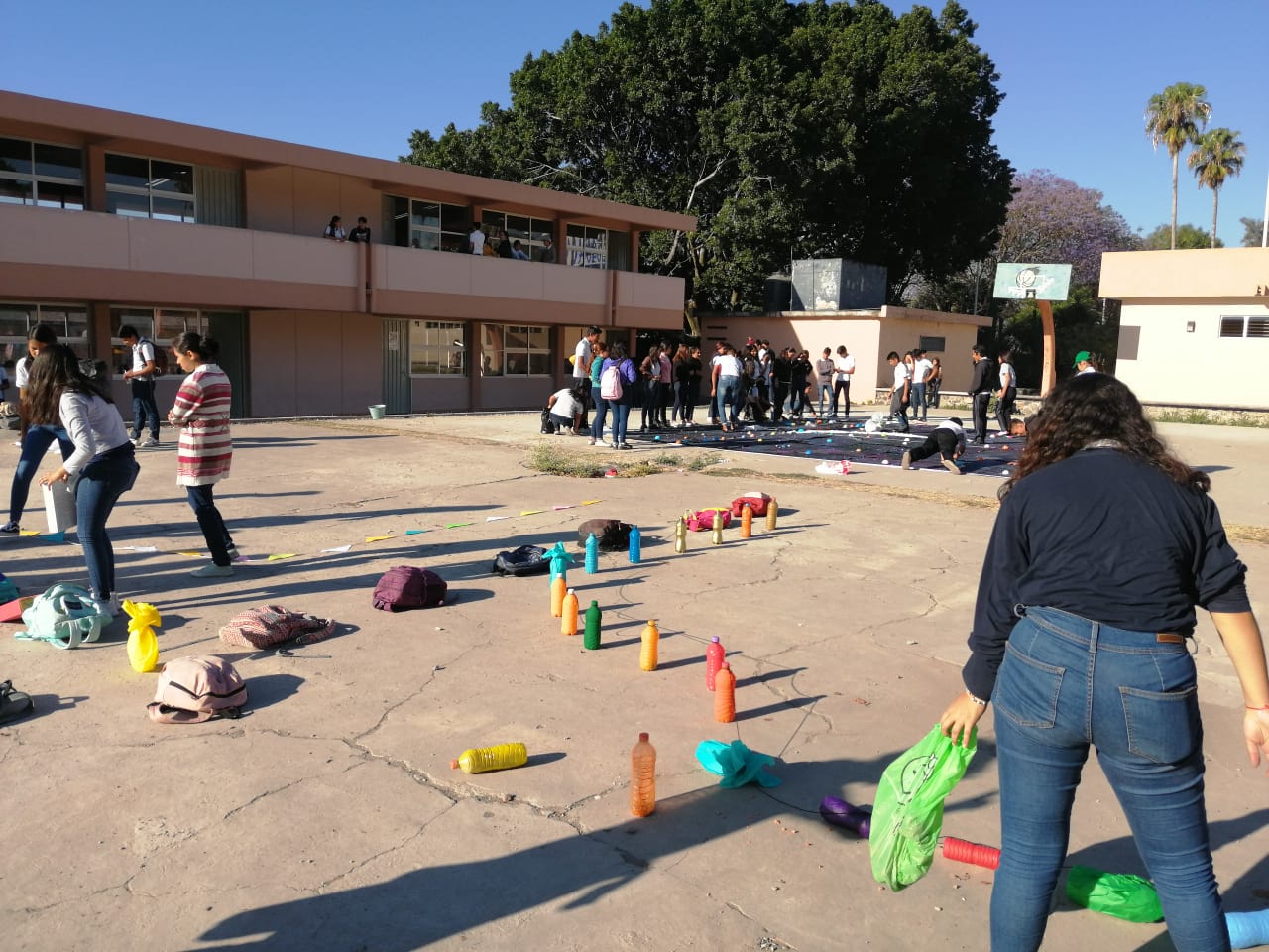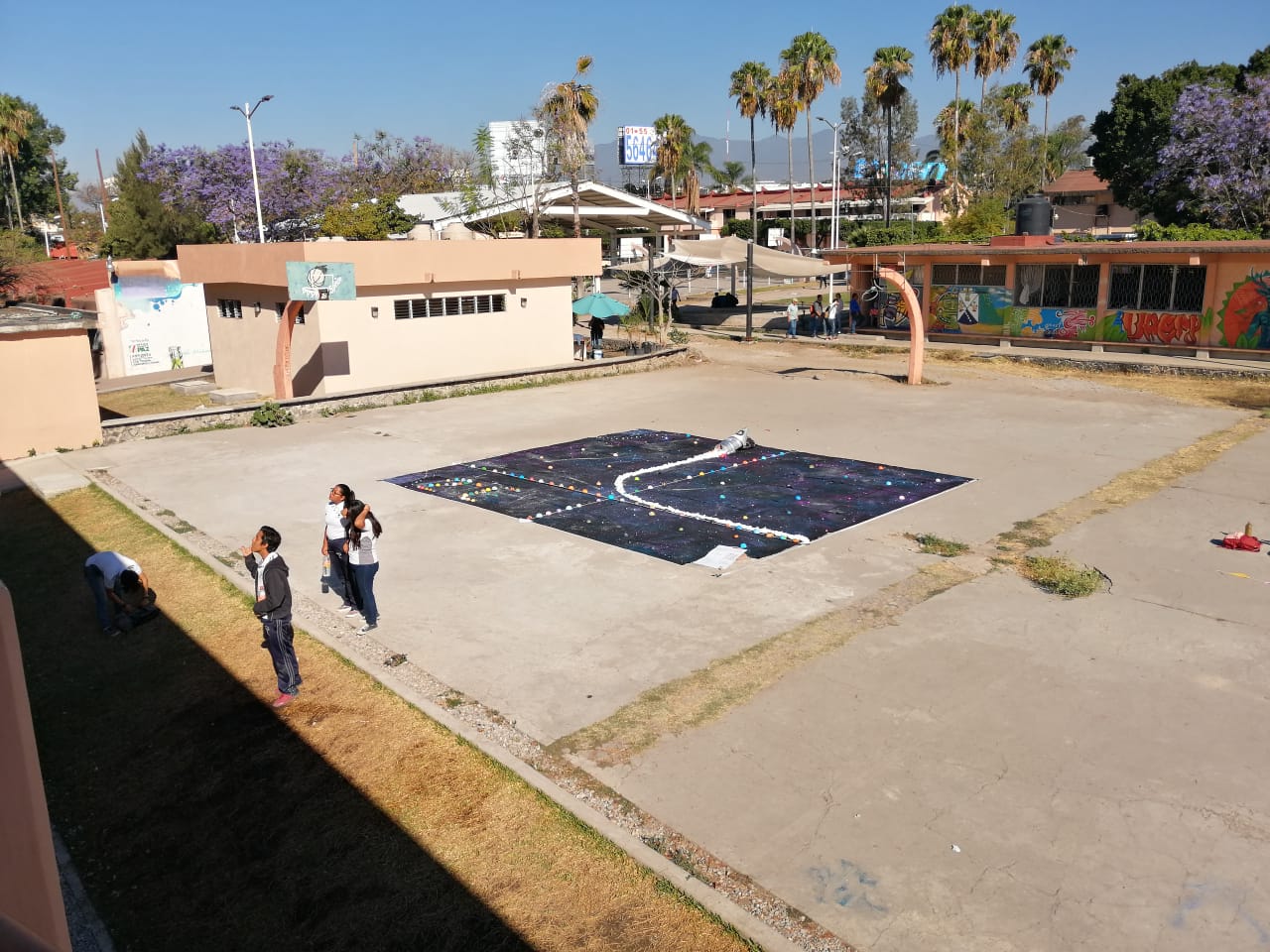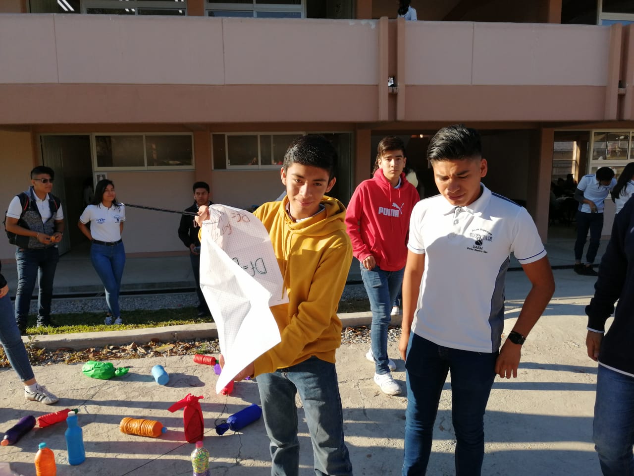 Los alumnos de 2E y 2F de la asignatura de matemáticas IV, llevaron a cabo una «Representación gráfica de una función, expresando su dominio y rango» en la explanada de las canchas de segundos años.
