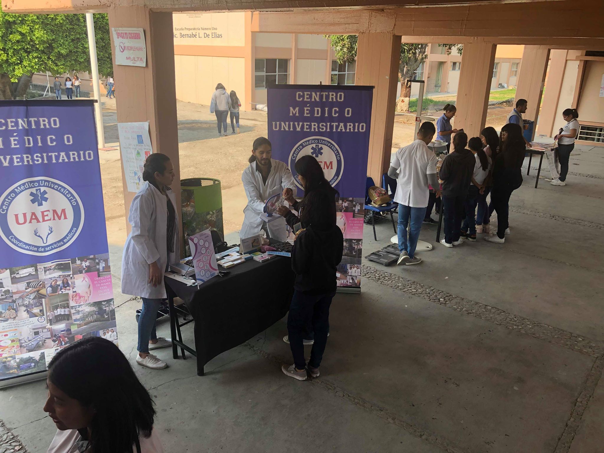 Con el fin de integrar la oferta de servicios de salud que brindan las diversas instituciones de nuestra localidad, contamos con la exposición de stands interactivos que promovieron la salud integral del adolescente, siendo así que contamos con la visita del Centro de Atención Integral para la Salud del Adolescente (CAISA), Centros de Integración Juvenil (CIJ), La Licenciatura en Seguridad Ciudadana, Facultad de Enfermería, Facultad de Nutrición, Facultad de Ciencias Aplicadas al Deporte y Centro Medico Universitario de la UAEM, UNEMECAPA, Secretaria de Salud con el programa Salud Sexual y Reproductiva,programa VIH. Así mismo se contó con la participación de diferentes especialistas para la impartición de diversas conferencias dirigidas a padres de familia, estudiantes y docentes. Conferencia dirigida a padres de familia: Prevención de violencia de género. Impartida por el Lic. José Antonio Guadarrama Cortez del Centro estatal de Prevención Social de la Violencia y Delincuencia con Participación Ciudadana.Conferencias dirigidas a estudiantes abordando temas tales como: Delitos cibernéticos, Factores protectores- Metas en mi vida, La oveja Negra, Psicología del deporte y la Salud, Pasión por tu vocación, Sentido de vida en el adolescente,Autoestima y Virus del Papiloma Humano.En la Conferencia dirigida a docentes se impartió el tema: Atención a la Diversidad, impartida por la Psic. Roció Cortés Popoca de la Facultad de Comunicación Humana.Para el cierre de la Jornada de Salud 2019, se contó con la partición de la dirección de Deporte de la UAEM, quienes realizaron la activación física con estudiantes, personal docente y administrativo de la preparatoria.