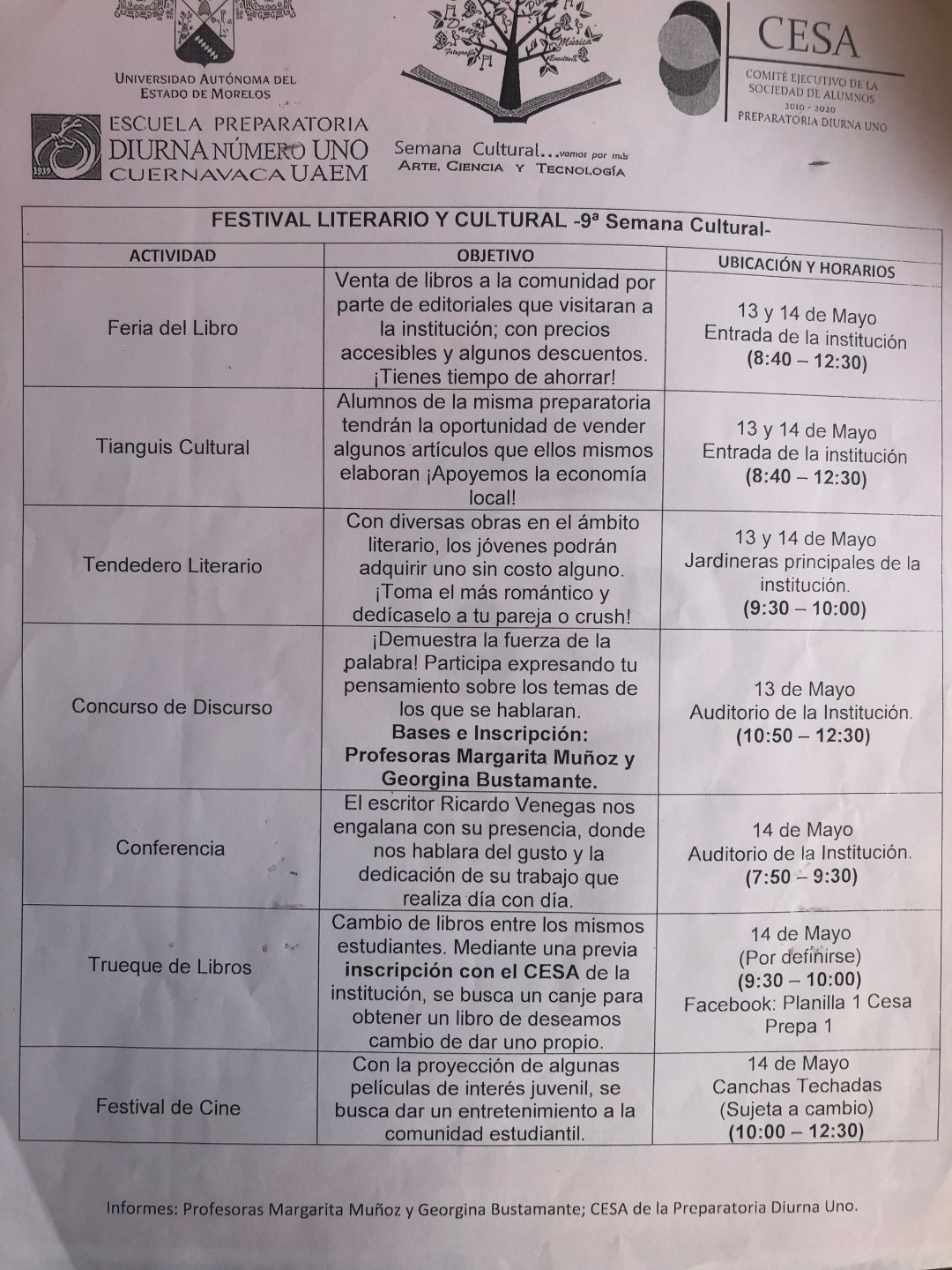 Los días 13 y 14 de mayo del 2019 se llevo a cabo el Festival Literario y Cultural organizado por la academia de taller de lectura y redacción y contando con la participación de nuestros estudiantes de todos los grados.