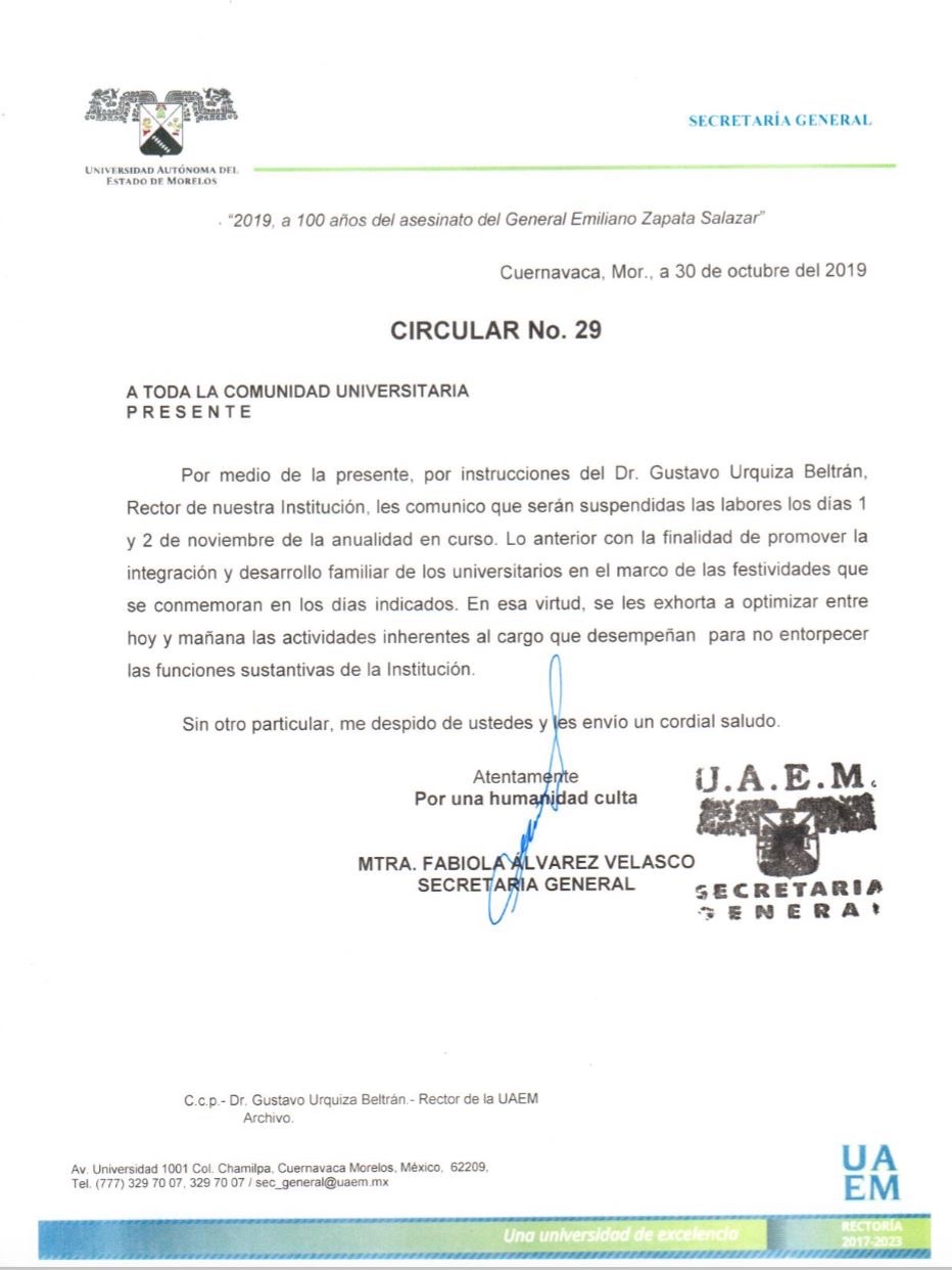 Les recordamos que los días 1 y 2 de noviembre no tendremos clases, por lo que regresamos a actividades el lunes 4 de noviembre del presente año.