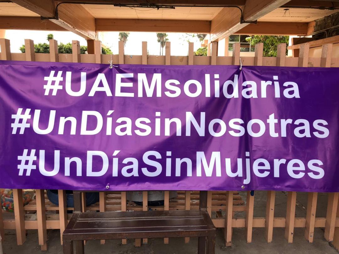 Dirección Escolar, Alumnas, Maestras y compañeras del personal administrativo apoyando el movimiento #undiasinnosotras #undiasinmujeres