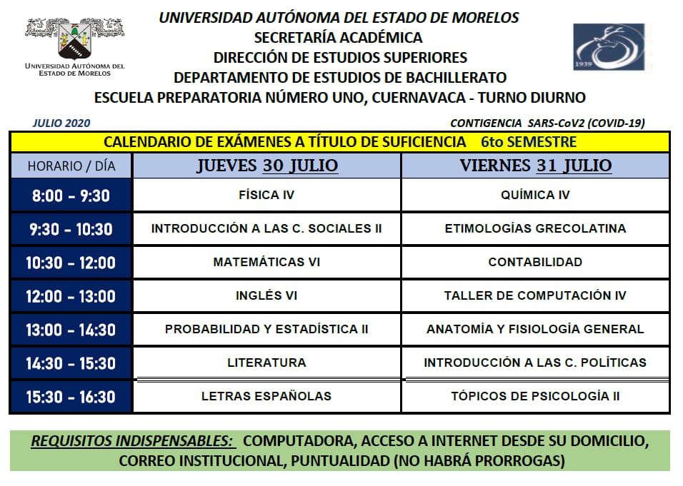 Les compartimos el calendario de aplicación de los exámenes a título de suficiencia para 6to semestre. Comparte esto: Haz clic para compartir en X (Se abre en una ventana nueva) X Haz clic para compartir en Facebook (Se abre en una ventana nueva) Facebook Me gusta Cargando... Relacionado