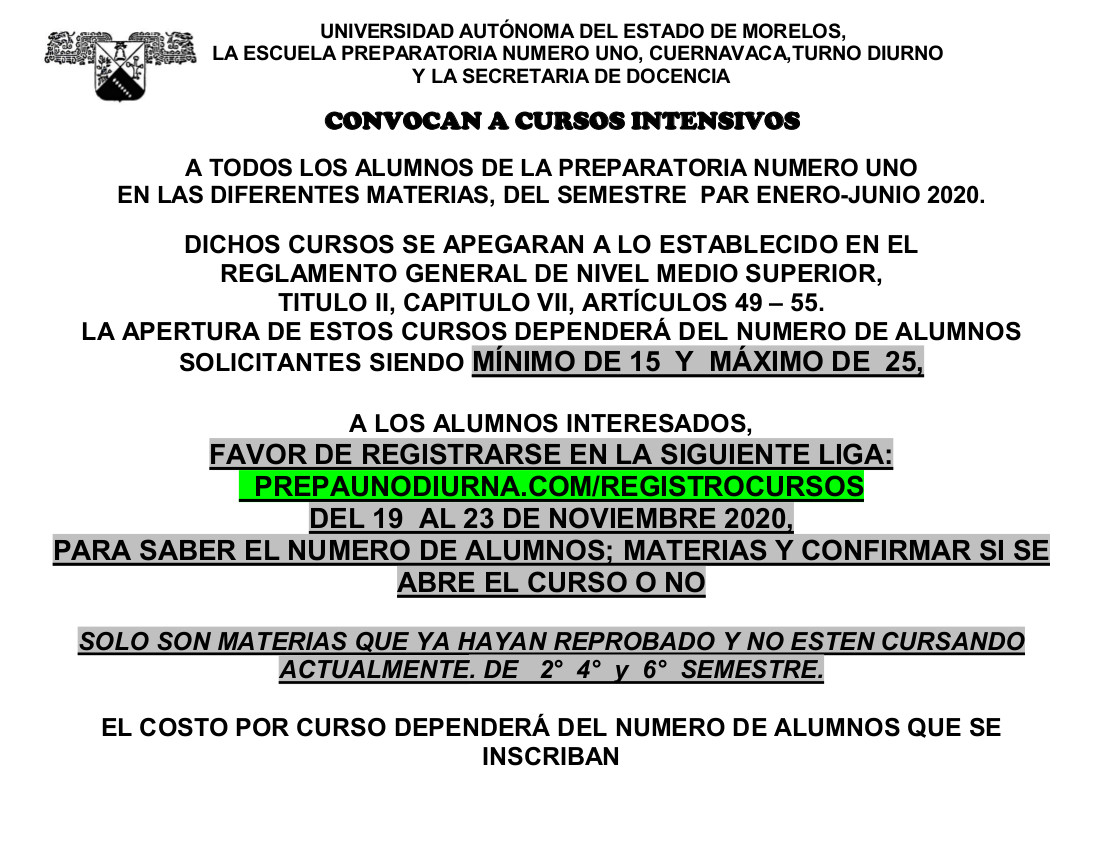 Estimados Alumnos de Segundo y Tercer Año, les compartimos la convocatoria para la solicitud de Cursos Intensivos de materias de semestre par.La liga para solicitar el curso es: https://prepaunodiurna.com/registrocursos/