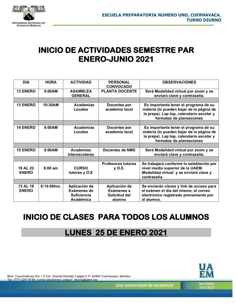Les compartimos las actividades del inicio de este semestre Enero-Junio 2021 y la fecha de inicio de clases virtuales. Comparte esto: Compartir en X (Se abre en una ventana nueva) X Comparte en Facebook (Se abre en una ventana nueva) Facebook Me gusta Cargando... Relacionado