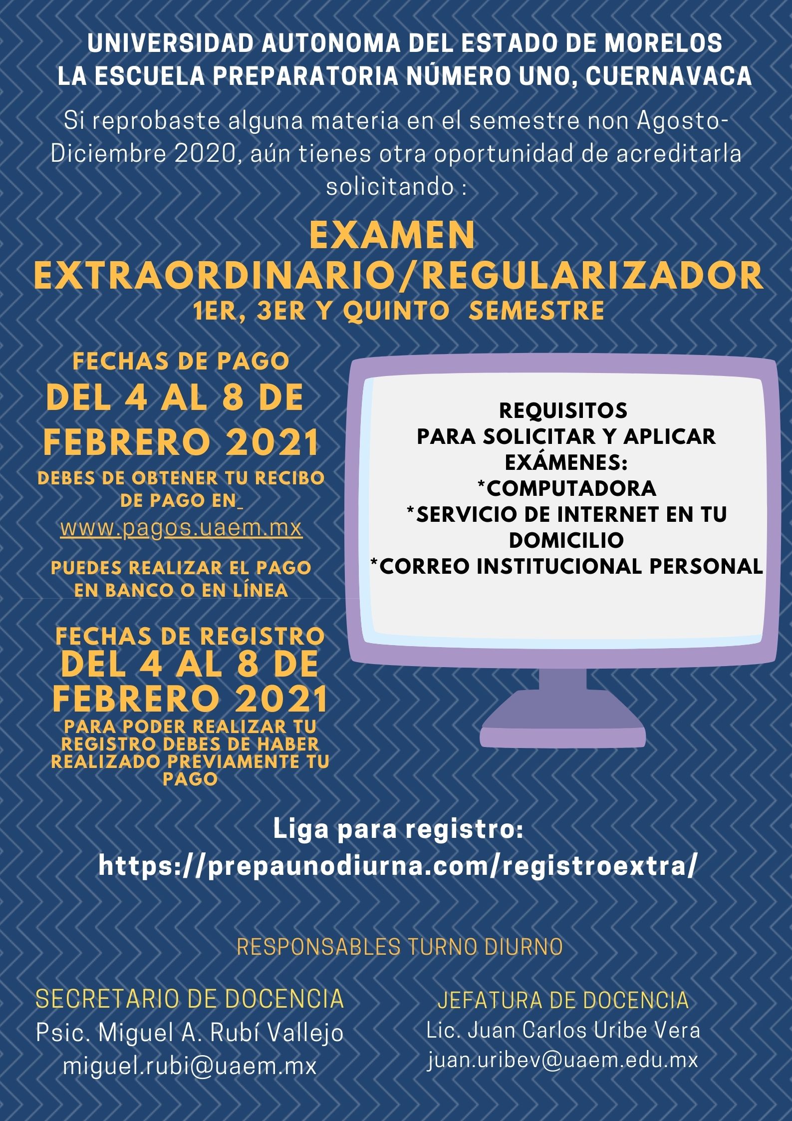 Les compartimos las fechas de pago y registro para el examen extraordinario (antes regularizador), el cual puedes solicitar si reprobaste una materia del semestre non agosto diciembre 2020, después de tus parciales y el examen de suficiencia