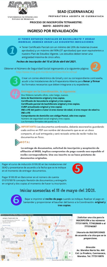 Convocatoria de Nuevo ingreso y por revalidación SEAD CUERNAVACA