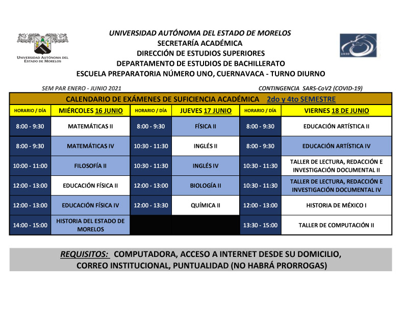 Les compartimos el calendario de aplicación de los exámenes de suficiencia académica para segundo y cuarto semestre. Comparte esto: Haz clic para compartir en X (Se abre en una ventana nueva) X Haz clic para compartir en Facebook (Se abre en una ventana nueva) Facebook Me gusta Cargando... Relacionado
