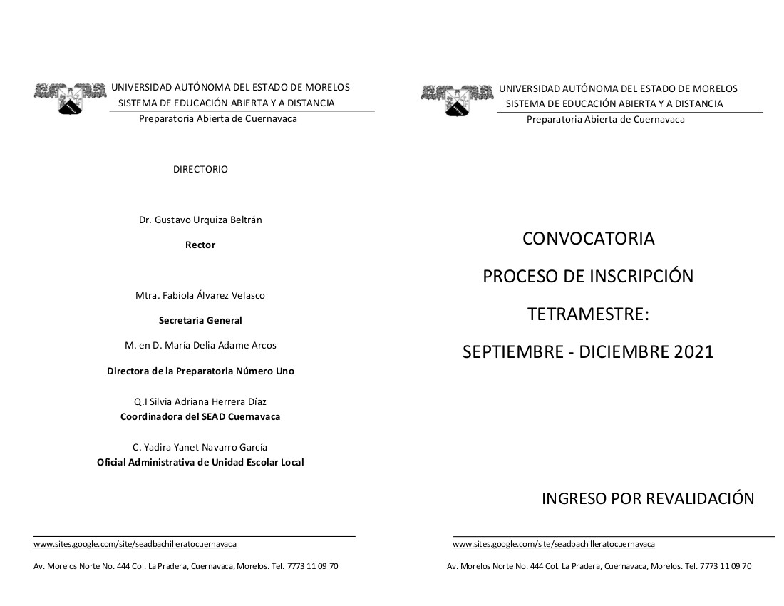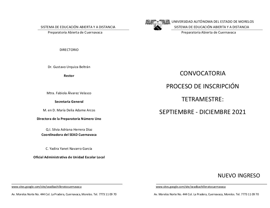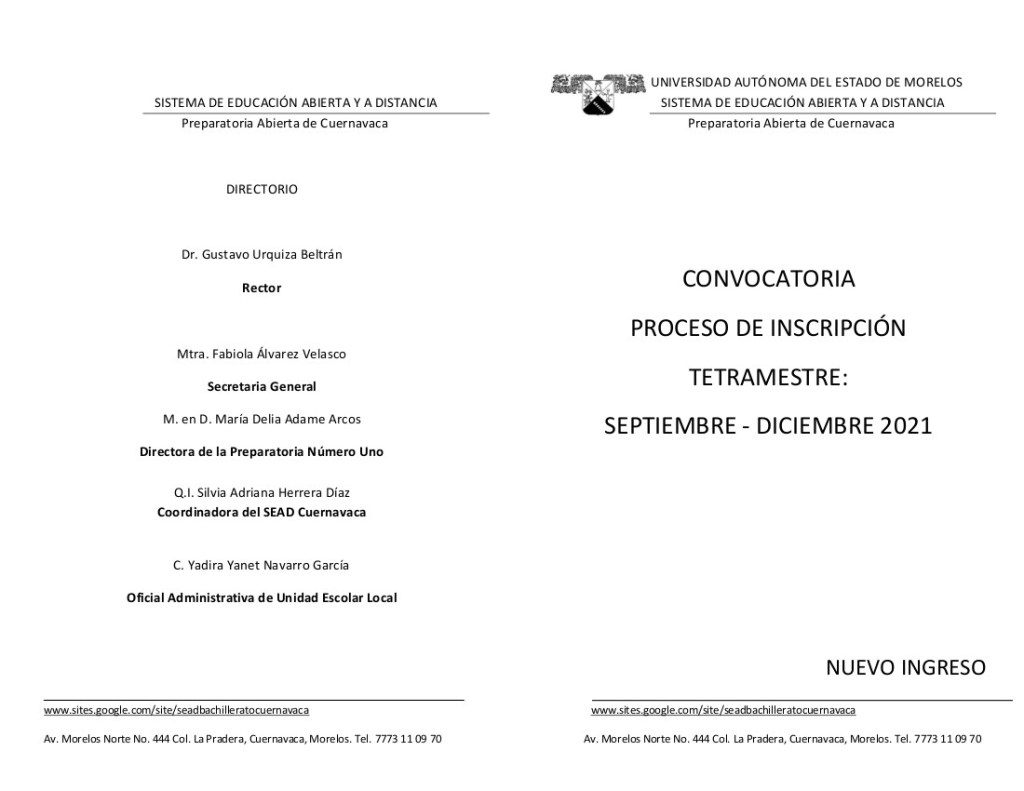 Les compartimos la convocatoria para nuevo ingreso y revalidación para la Preparatoria en sistema abierto de la UAEM (SEAD), asi como la página web donde pueden solicitar mayor información: