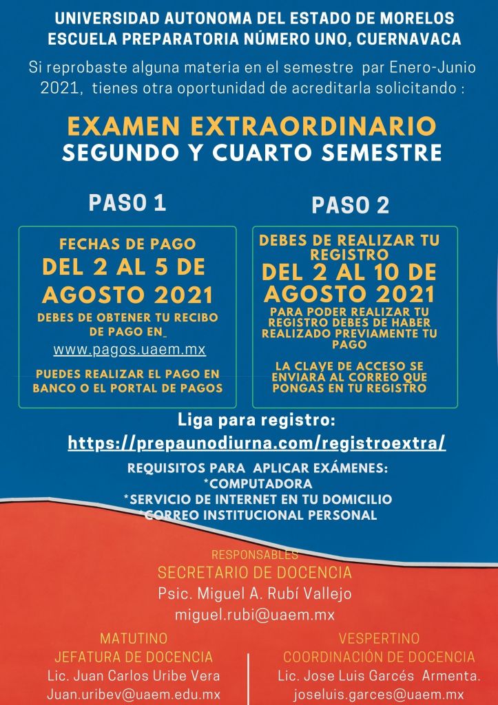 Les compartimos la información para el pago y registro del examen extraordinario para materias de 2do y 4to semestre de Enero Junio 2021. Comparte esto: Haz clic para compartir en X (Se abre en una ventana nueva) X Haz clic para compartir en Facebook (Se abre en una ventana nueva) Facebook Me gusta Cargando... Relacionado