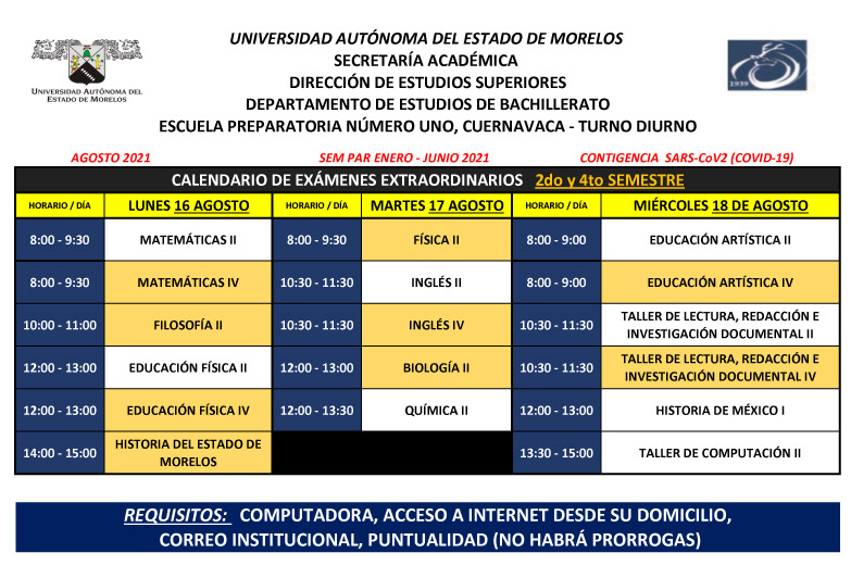 CALENDARIO DE APLICACIÓN EXÁMENES EXTRAORDINARIOS DE SEGUNDO Y CUARTO SEMESTRE