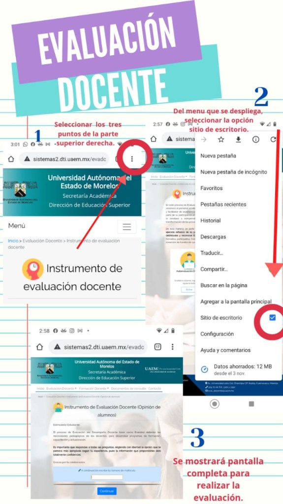 Alumnos, si tienen problemas para realizar su EVALUACIÓN DOCENTE en su teléfono u otro dispositivo móvil, les compartimos las instrucciones para que puedan hacerla sin problemas. Les agradecemos el apoyo en cumplir con su evaluación. Comparte esto: Haz clic para compartir en X (Se abre en una ventana nueva) X Haz clic para compartir en Facebook (Se abre en una ventana nueva) Facebook Me gusta Cargando... Relacionado