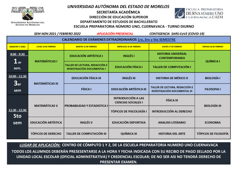 Les compartimos el calendario de aplicación de los exámenes extraordinarios los cuales se realizarán de manera PRESENCIAL en nuestras instalaciones.
