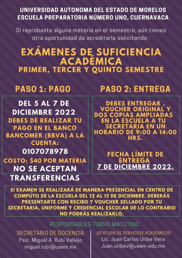 Les compartimos la información referente a los exámenes de Suficiencia Académica del semestre non 2022.