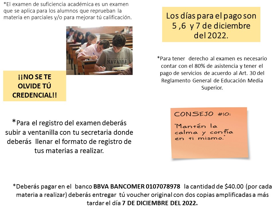 Les recordamos que si no tienen su credencial, realicen el trámite lo más pronto posible, ya que no podrán realizar el examen.