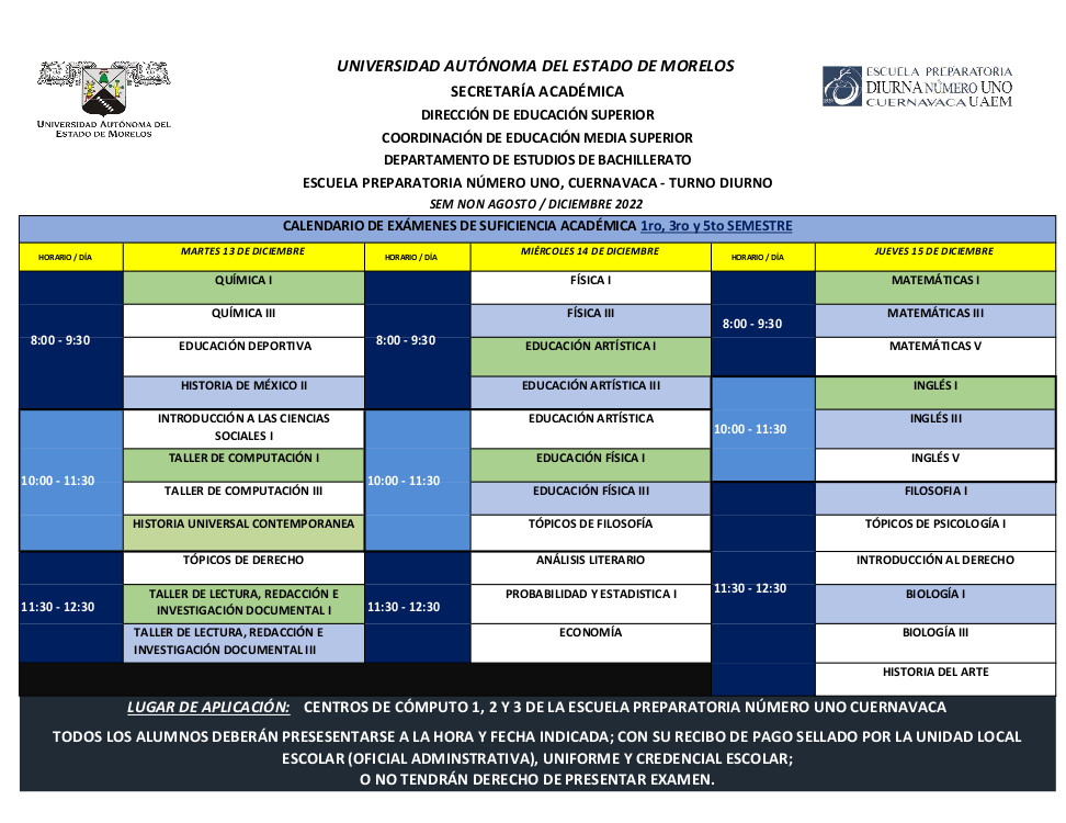TODOS LOS ALUMNOS DEBERÁN PRESENTARSE A LA HORA Y FECHA INDICADA; CON SU RECIBO DE PAGO SELLADO POR LA UNIDAD LOCAL ESCOLAR (OFICIAL ADMINISTRATIVA), UNIFORME Y CREDENCIAL ESCOLAR, DE LO CONTRARIO NO PODRÁN REALIZAR SU EXAMEN.