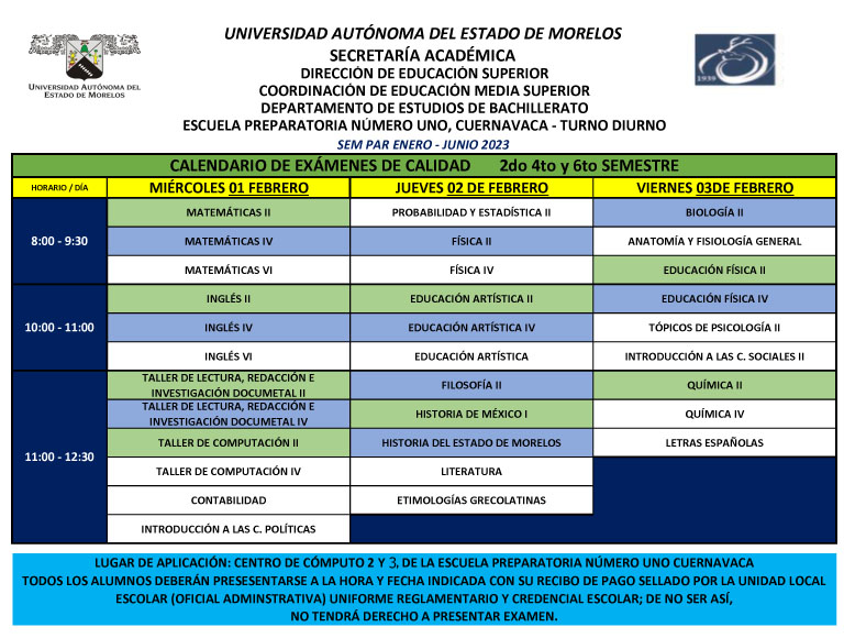Les compartimos el calendario de aplicación de los Exámenes de Calidad de materias de 2do, 4to y 6to semestre.