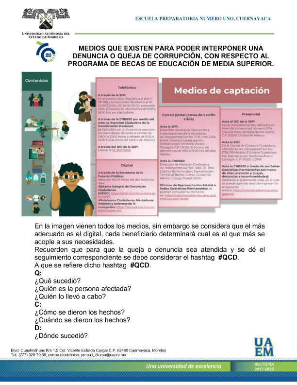 MEDIOS QUE EXISTEN PARA PODER INTERPONER UNA DENUNCIA O QUEJA DE CORRUPCIÓN, CON RESPECTO AL PROGRAMA DE BECAS DE EDUCACIÓN DE MEDIA SUPERIOR. Comparte esto: Haz clic para compartir en X (Se abre en una ventana nueva) X Haz clic para compartir en Facebook (Se abre en una ventana nueva) Facebook Me gusta Cargando... Relacionado