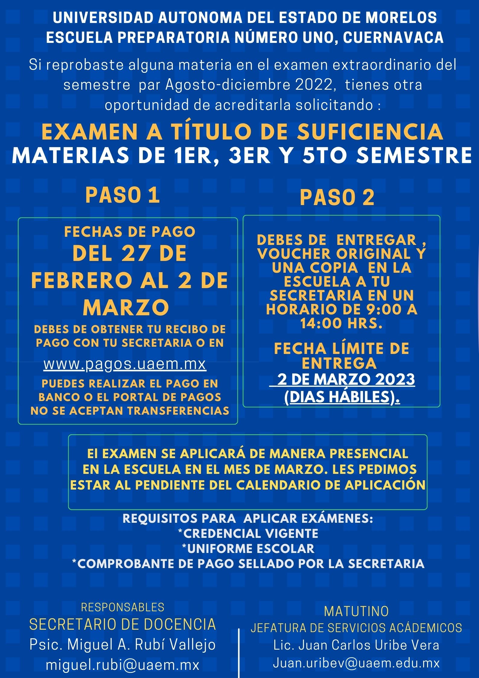 Les compartimos la información de pago y recepción de recibos de los exámenes a Título de Suficiencia, los cuales son la siguiente oportunidad si no pasaste tu materia con el examen extraordinario.