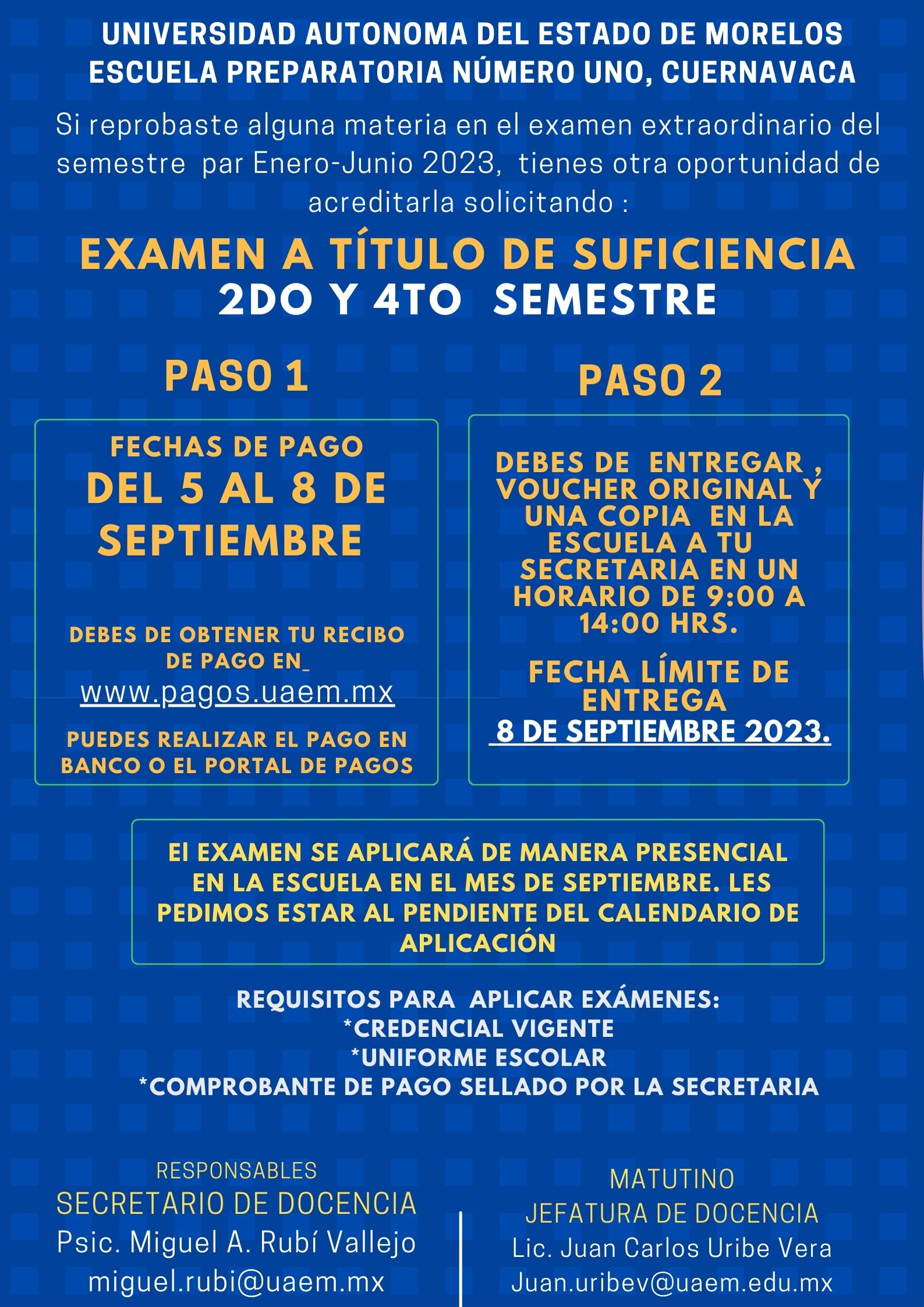 Si reprobaste alguna materia en el examen extraordinario del semestre par Enero-Junio 2023, tienes otra oportunidad de acreditarla solicitando : Comparte esto: Haz clic para compartir en X (Se abre en una ventana nueva) X Haz clic para compartir en Facebook (Se abre en una ventana nueva) Facebook Me gusta Cargando... Relacionado