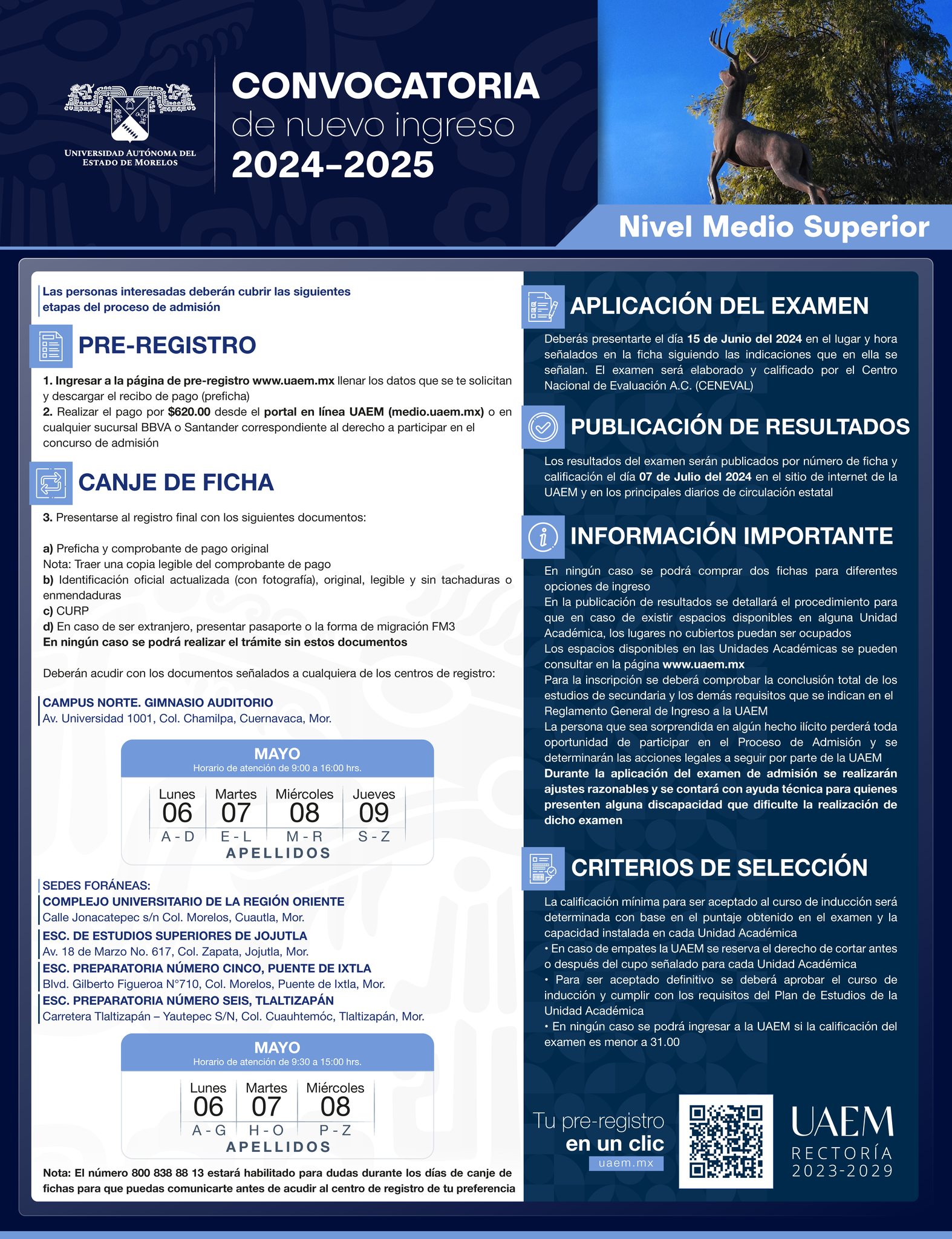Les compartimos la convocatoria de Nivel Medio superior que realiza la UAEM, para aquellos jóvenes interesados en formar parte de nuestra institución. Comparte esto: Haz clic para compartir en X (Se abre en una ventana nueva) X Haz clic para compartir en Facebook (Se abre en una ventana nueva) Facebook Me gusta Cargando... Relacionado