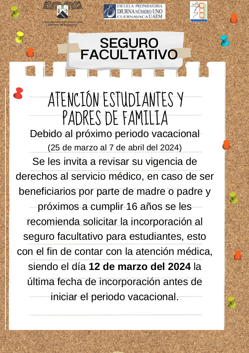 Es MUY IMPORTANTE estar vigente en el IMSS ya sea como beneficiarios (seguro por parte de los papás) o facultativo (seguro de estudiantes).