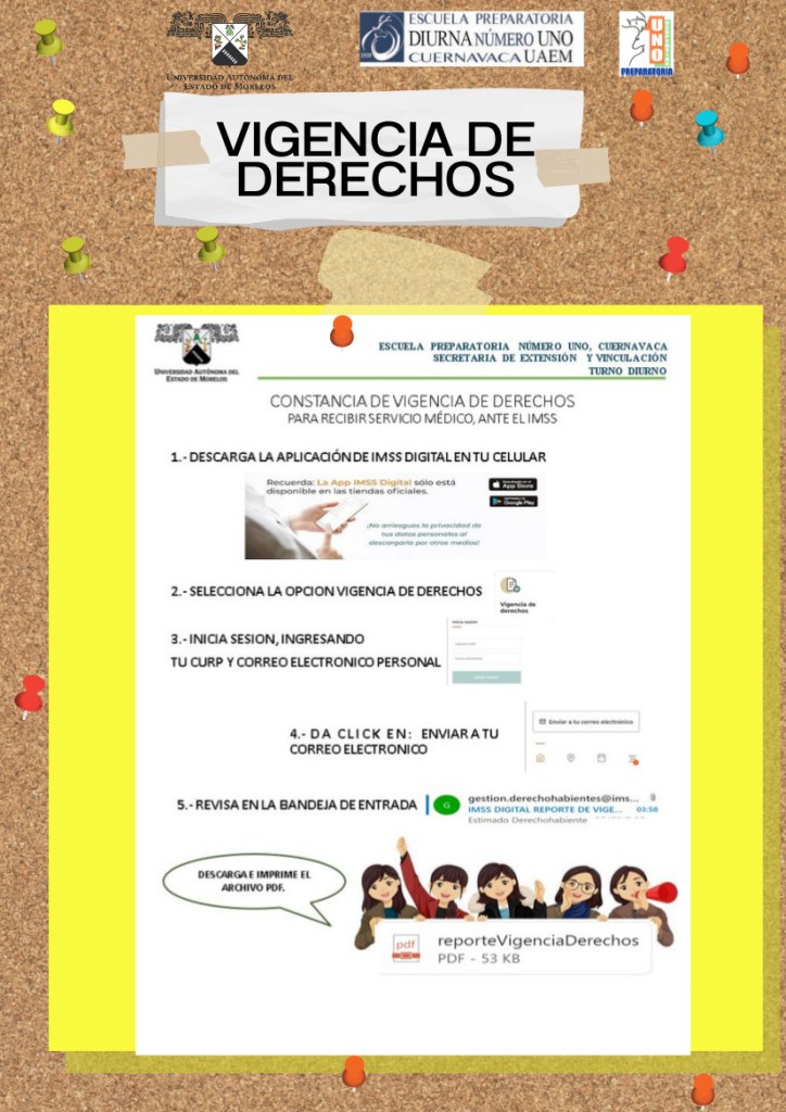 Por lo anterior se solicita checar su vigencia e imprimirla y entregar una copia a la oficina del IMSS de la prepa, la fecha límite es el martes 19 de marzo del presente año.