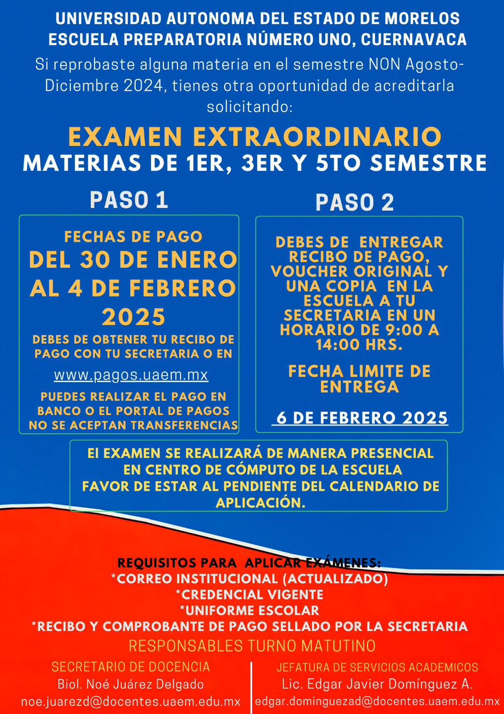 Estimados alumnos y padres de familia, les compartimos la información de la fecha de pago y entrega de recibo para el examen extraordinario, el cual es la siguiente oportunidad si no acreditaste la materia en examen de suficiencia o tus parciales.