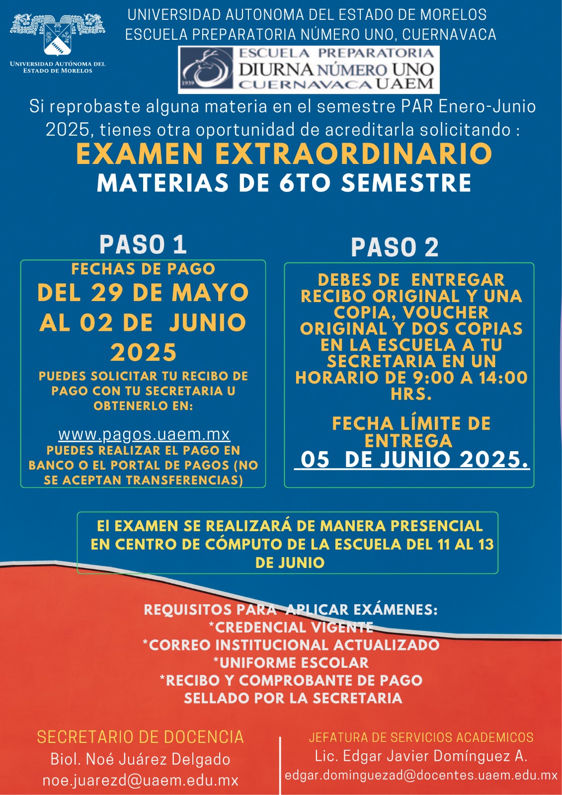 Les compartimos la información de las fechas de pago y entrega de comprobante del examen Extraordinario para materias de 6to semestre. Comparte esto: Haz clic para compartir en X (Se abre en una ventana nueva) X Haz clic para compartir en Facebook (Se abre en una ventana nueva) Facebook Me gusta Cargando... Relacionado