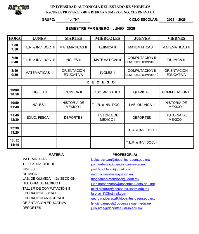 • HORARIOS SEMESTRE ENERO-JUNIO 26