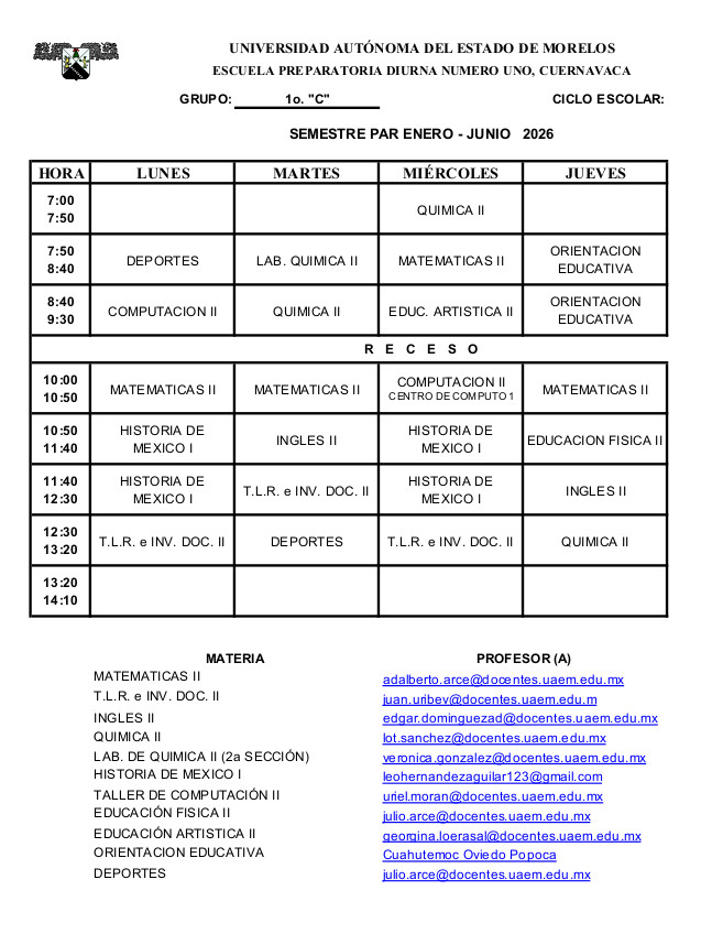 • HORARIOS SEMESTRE ENERO-JUNIO 26