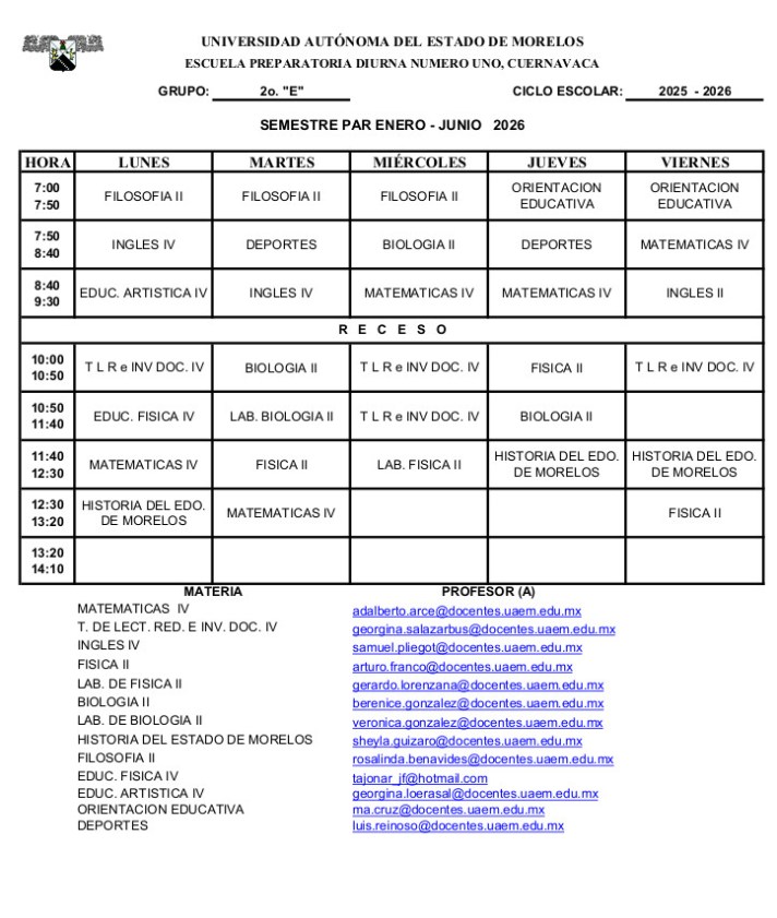 • HORARIOS SEMESTRE ENERO-JUNIO 26