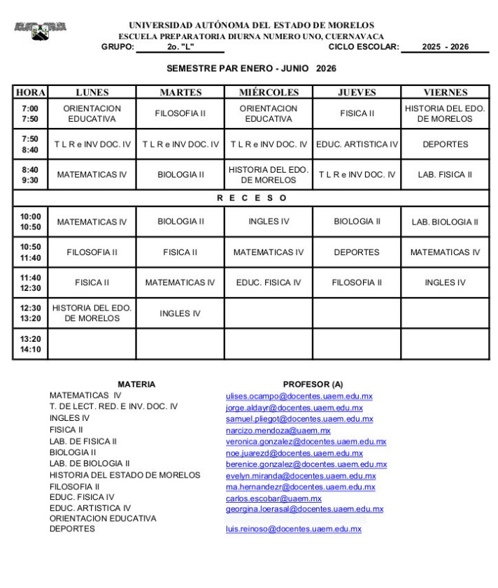 • HORARIOS SEMESTRE ENERO-JUNIO 26