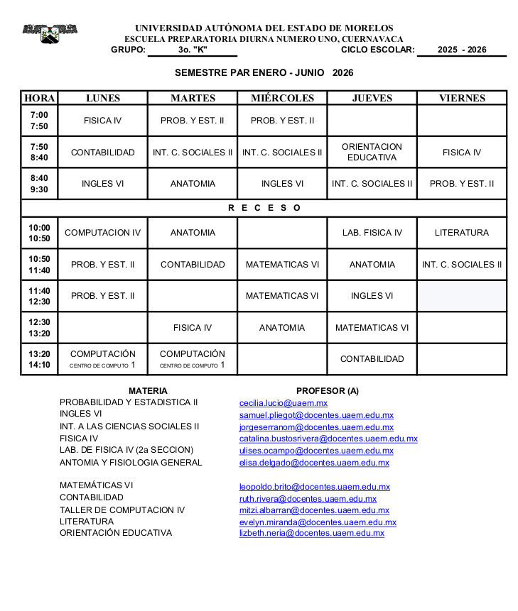 • HORARIOS SEMESTRE ENERO-JUNIO 26